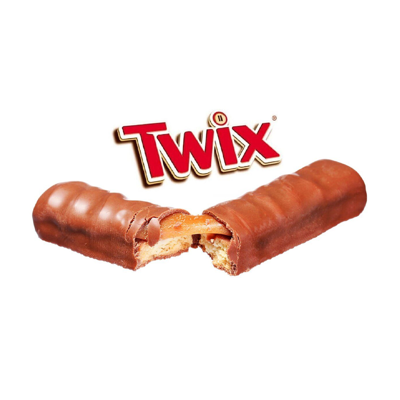 Бисквитные палочки Twix с глазированной карамелью, покрытые молочным шоколадом.